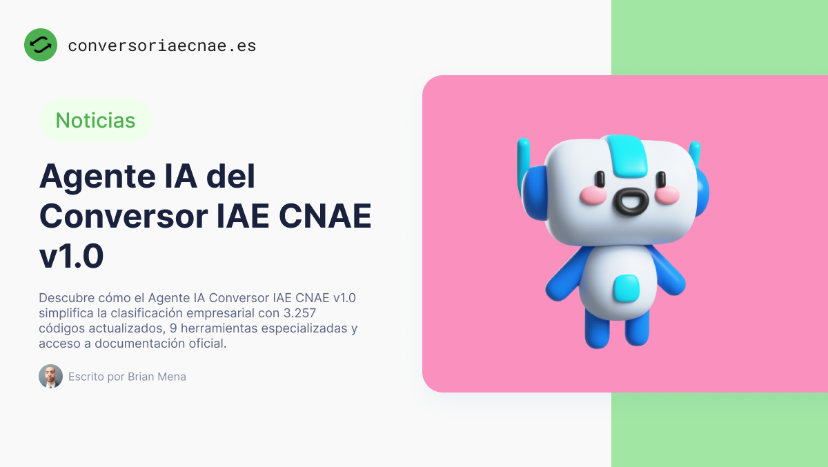Descubre cómo el Agente IA Conversor IAE CNAE v1.0 simplifica la clasificación empresarial con 3.257 códigos actualizados y 9 herramientas especializadas.