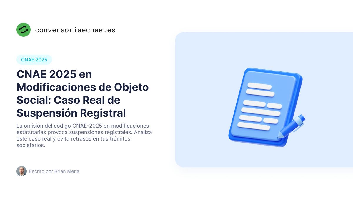 CNAE 2025 en Modificaciones de Objeto Social: Caso Real de Suspensión Registral