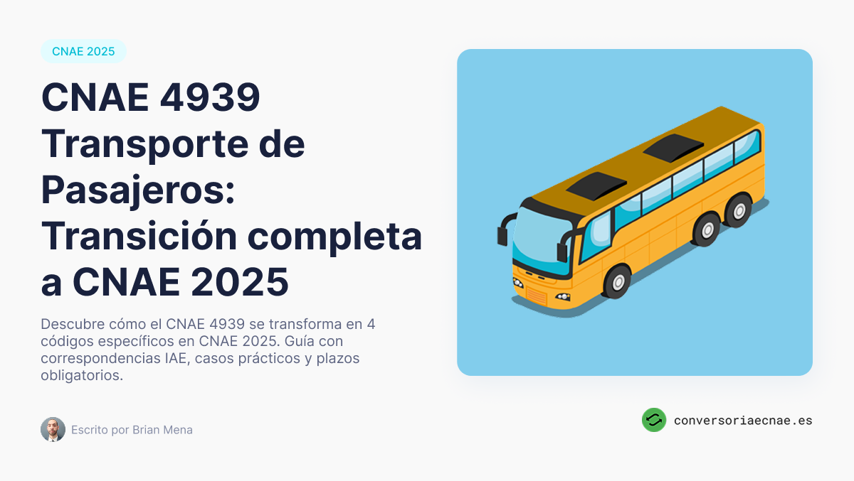 Descubre cómo el CNAE 4939 se transforma en 4 códigos específicos en CNAE 2025. Guía con correspondencias IAE, casos prácticos y plazos obligatorios.