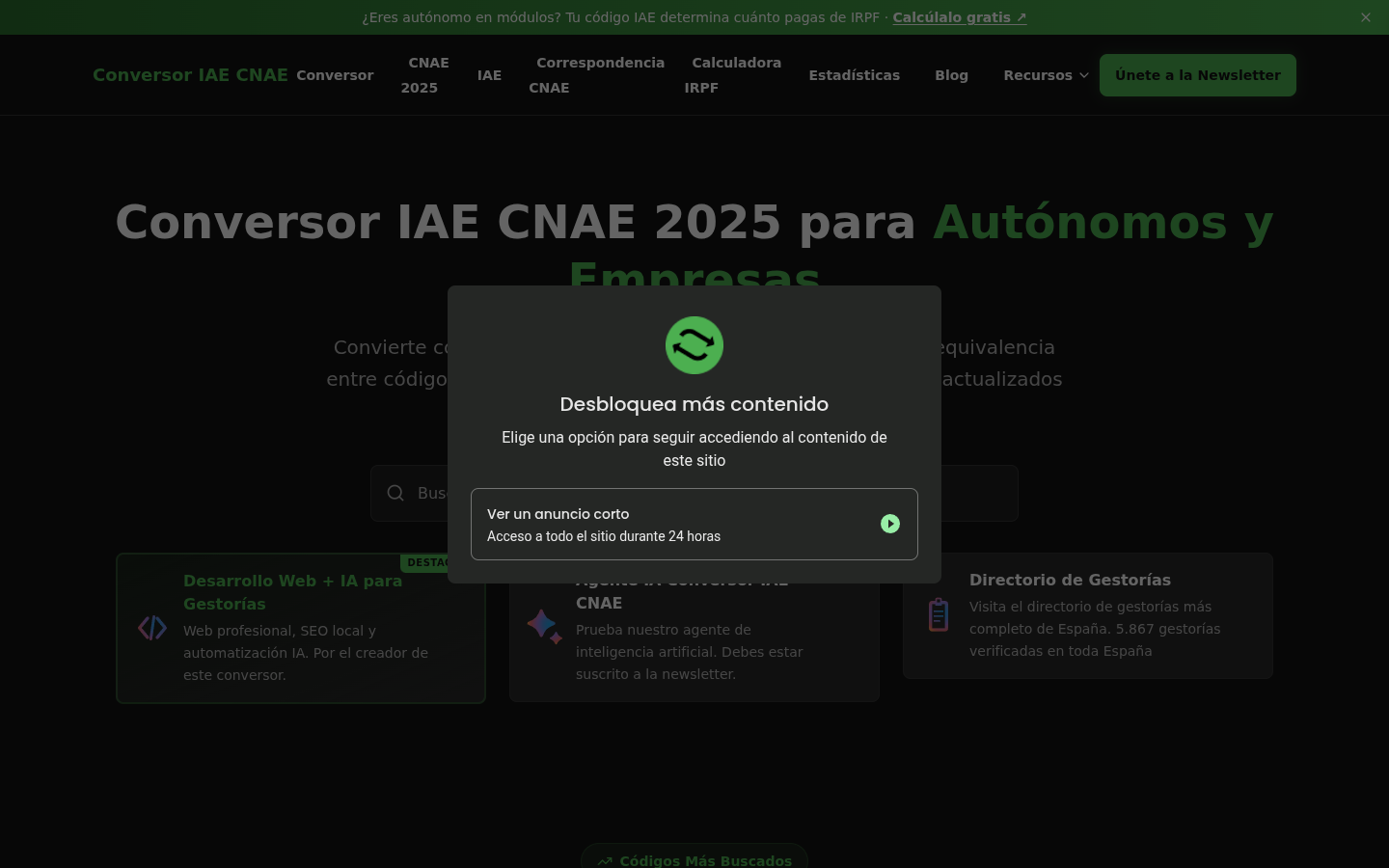 La conocida plataforma de rentas TaxDown dispone de una landing page que simula ser un conversor. Lamentablemente, en nuestras comprobaciones (probado con CNAE 70.20 e IAE 111.2), el conversor no funcionó en absoluto, no mostrando ningún resultado. Parece tratarse únicamente de una maqueta visual inoperativa.