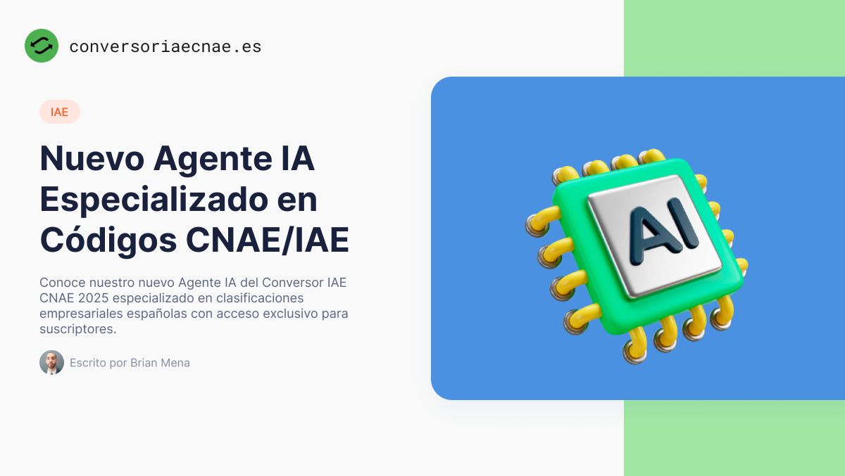 Conoce nuestro nuevo Agente IA del Conversor IAE CNAE 2025 especializado en clasificaciones empresariales españolas con acceso exclusivo para suscriptores.