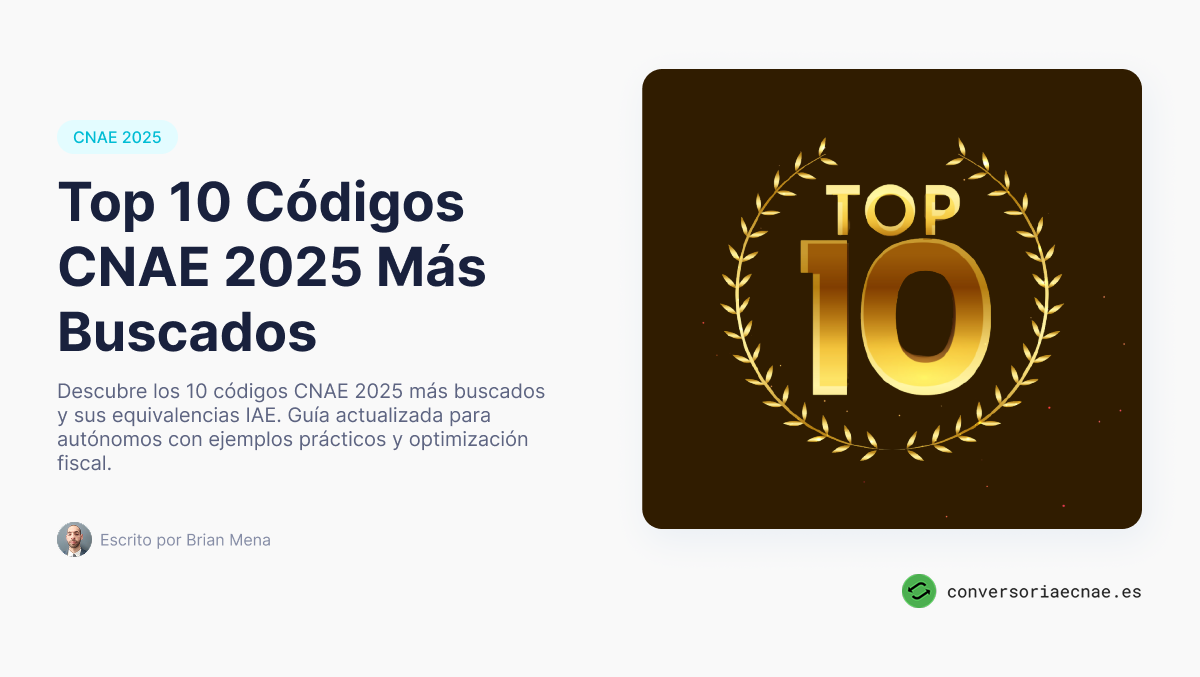 Descubre los 10 códigos CNAE 2025 más buscados y sus equivalencias IAE. Guía actualizada para autónomos con ejemplos prácticos y optimización fiscal.